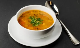 நறுமண மிளகுடன் இணைந்து மென்மையான, கிரீமி சுவை இந்த உணவை சுவையாகவும் ஆரோக்கியமாகவும் ஆக்குகிறது. சிறிய மிளகுத்தூள் தேர்வு செய்யவும்.