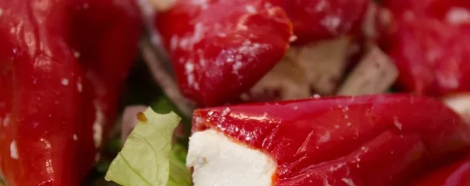 பாலாடைக்கட்டி கொண்டு அடைத்த இனிப்பு மிளகுத்தூள் ஒரு காரமான, எளிமையான மற்றும் லேசான பசியின்மை.