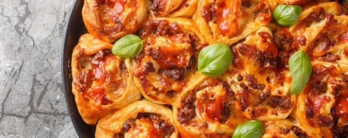 புகைப்படம்: திறந்த மூலங்களிலிருந்து பாலாடைக்கட்டி மற்றும் இறைச்சி நத்தைகள் நவீன சேவையுடன் கூடிய வசதியான வீட்டில் தயாரிக்கப்பட்ட சுடப்பட்ட பொருட்களின் வெற்றிகரமான